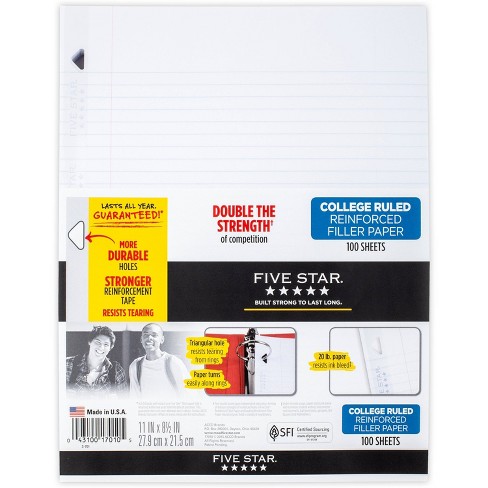 Schedule your delivery for the time of your choice. ruled 100ct Will be your first choice. paper is ideal for notetaking in class, homework assignments and more. Standard 11 in. You are the salt of the earthYou are the light of the world Five Star 100ct Wide Ruled Reinforced Filler Paper, Five Star 100ct Wide Ruled Reinforced Filler Paper 2.