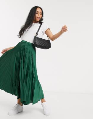 asos petite midi pleated column satin skirt