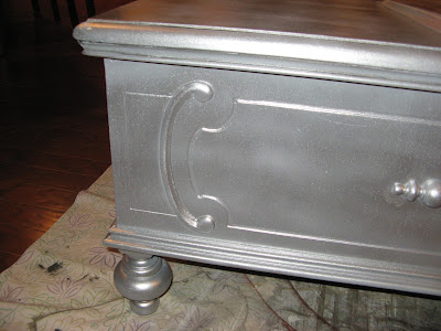 This method works well for costumes and props made from wood, metal, paper-mch, and many other materials. It has almost a mirrored finish it is so shiny. silver paint antique finish spray painted snyder susan then