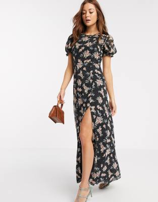 Brown Floral Bardot Maxi Dress - Brown - River Island Dresses.