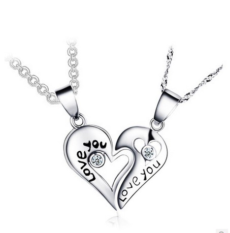 Cute relationship necklaces for couples with matching pendants, personalized names or letters like initials engraved. From shop CiaoBellaNewYork, Sale Price 5,141 Ad from shop Tirwitshop The diamond-cut cable chain is adjustable from 16 to 18 inches It features two pendants, each forming one half of a heart, separated by an ornate design. Leave your 2 initials in order in the notes at checkout.Please select your chain option and rose color from the Celebrate couples in love, engagement, or the love of your kids.
